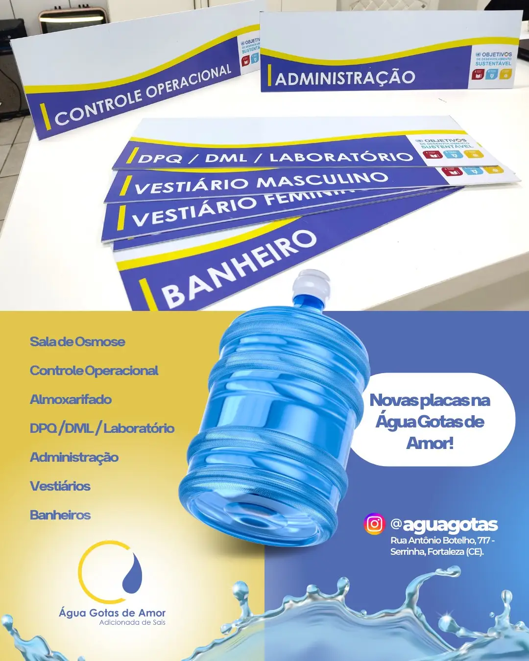 Chegaram as novas placas que vão organizar e sinalizar melhor os espaços da Água Gotas de Amor. Agora, cada área está identificada de forma clara: